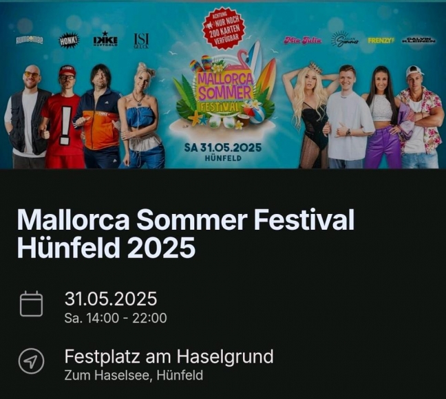 2 Karten Mallorca Festival Hünfeld 31.05.2025