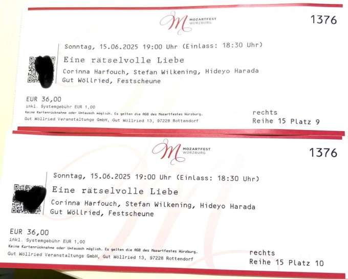 2 Karten Mozartfest Corinna Harfouch