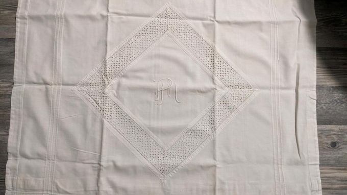 Ich biete diese beiden Kissenbezüge mit hübschen Details und eingestickten Initialen "P M" an.