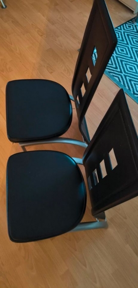 Zwei gut lederimitierte Stühle in schwarz. Gebraucht.