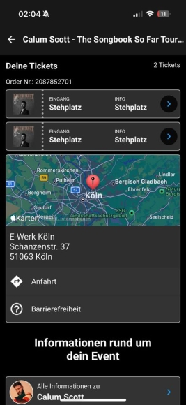 Ich biete hier 2 Karten (Stehplätze) für das Calum Scott Konzert am 24.04.24 im E-Werk Köln an.
