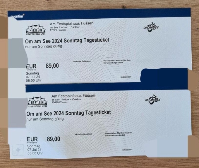 Ich biete 2 Tagestickets fürs Om am See Festival am 07.07.24 in Füssen.