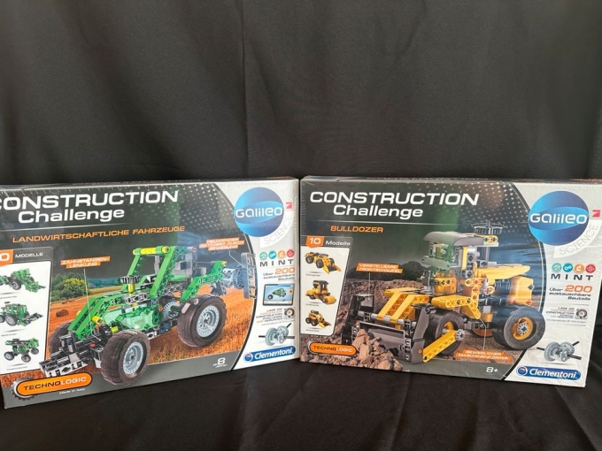 Verkaufe hier 2 Sets CONSTRUCTION Challenge ( Ähnlich Lego Technic ) von Galileo . 2 verschiedene noch neu verpackt wie auf den Fotos zu sehen ist .