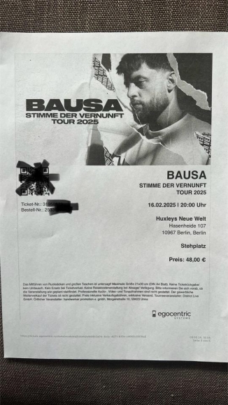 Ich biete 2 Tickets für das BAUSA Konzert heute Abend in Berlin