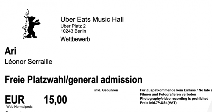 2 Tickets für "Ari" Berlinale Uber Eats Arena 18:00 HEUTE