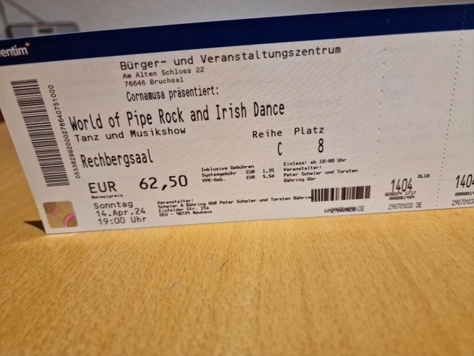 2 tickets für "WORLD OF PIPE ROCK AND IRISH DANCE" 14.04. BRUCHSA