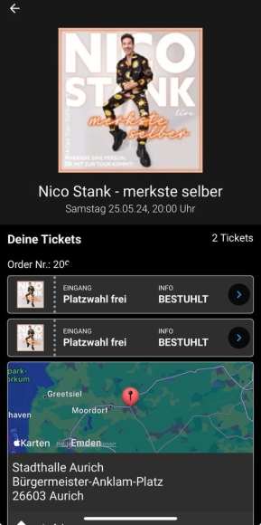 2 Tickets für Nico Stank am 25.05. in Aurich