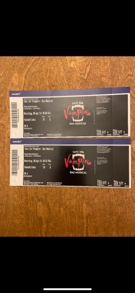 2 Tickets für Tanz der Vampire, Originalpreis 65€ pro Karte