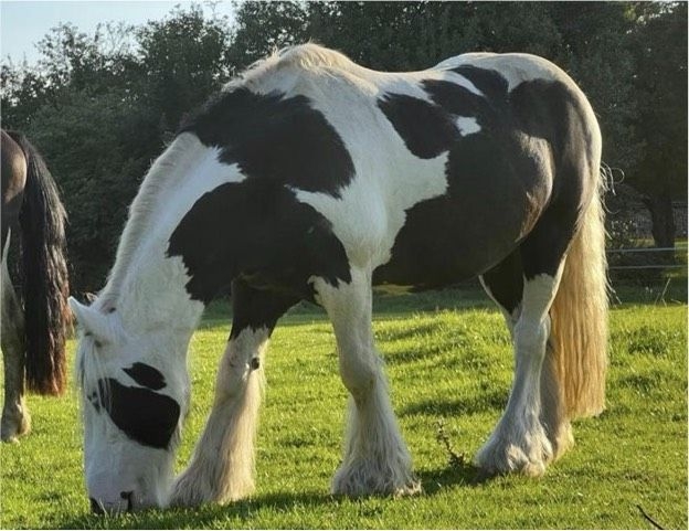 Kräftige Tinker Rappstute mit Fohlen für 2024 zu verkaufen. Stm. ca 1.42 m. Soll geritten und gefahren sein, hatte aber die letzten 4 Jahre Fohlen. Hat ein milchiges Auge durch eine alte Verletzung, beeinträchtigt sie nicht, für 3500 € zu verkaufen.