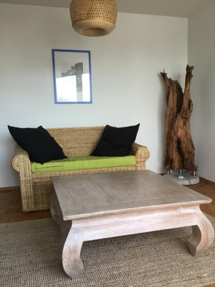 Komplett eingerichtetes Wohnzimmer, inkl. kleinem Schreibtisch. Grosser Balkon.