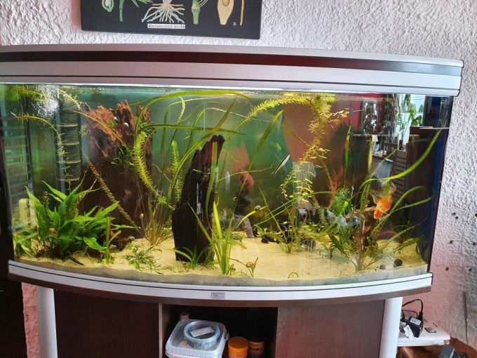 Biete mein schönes, einwandfreies Aqualantis-Panorama-Aquarium.120x50x60 + dazugehörigem Schrank. Ich gebe es ungern ab, doch im Moment habe ich einfach nicht genug Zeit dafür. Das Auqarium hat programmierbare LED-Beleuchtung, 2 Innenpumpen und einen UV-Licht-Reiniger. Dazu kommt noch etliches an Zubehör, Futter, Eimer, Schläuche, Reinigungsutensilien, Netze etc. und eine Eheim Außenfilter, der aber neue Filterelemente benörigt und zur Zeit nicht im Gebrauch ist.