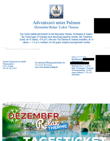 2x digitales Tagesticket Therme Erding "Adventszeit unter Palmen"
