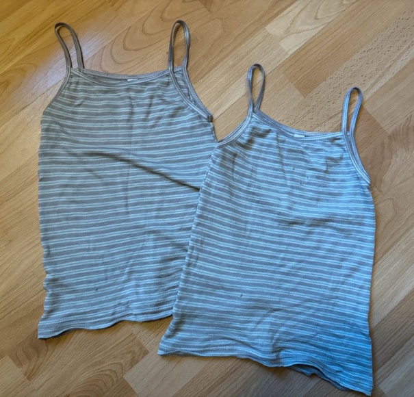 DILLING 2x Unterhemd Spaghettitop aus Wolle Seide in altrosa-beige gestreift