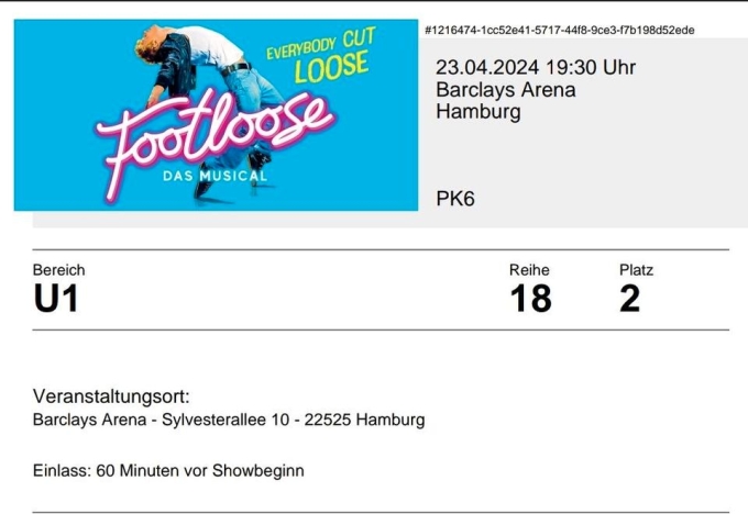 2x Footloose Musical in Hamburg am 23.4 (Barclays Arena)