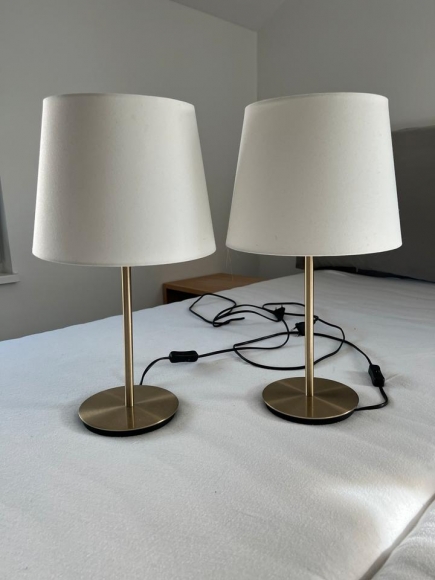 Wir verkaufen hier zwei kleine Stehlampen für einen Schreibtisch oder einen Nachttisch höhe 45 cm Durchmesser 25 cm mit einem Kippschalter und einem Stecker