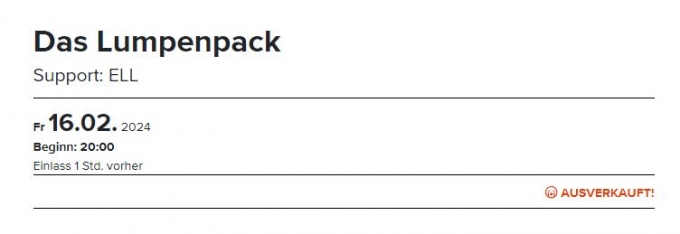 ich suche zwei Tickets für das Lumpenpack Konzert in Göttingen. Bin bereit auch etwas mehr zu zahlen!