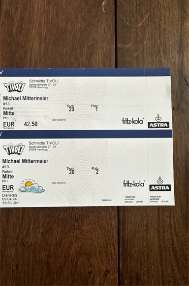 Aus terminlichen Gründen verkaufe ich hier meine Karten für Michael Mittermeier für den 9. April 2024 19:30 Uhr