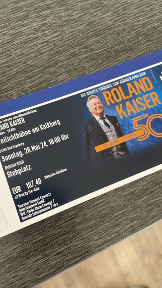 Ich biete hier 2 Karten für das Roland Kaiser Konzert in Bad Segeberg für den 26.05.2024 an.
