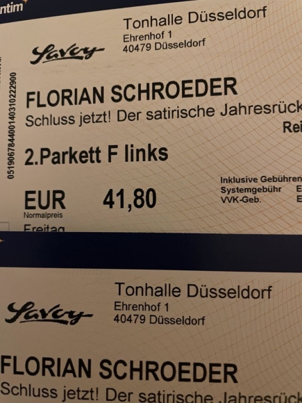 Biete 2x Tickets für Florian Schröder in der Tonhalle am 19.01.24 - können verschickt oder abgeholt werden