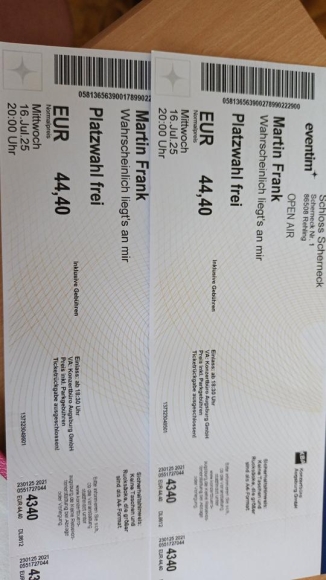Ich biete hier zwei Karten für Martin Frank mit seinem aktuellen Programm "Wahrscheinlich liegts an mir". Die Lokation ist das traumhafte Schloss Scherneck bei Rehling, nahe Augsburg. DiecVeranstaltungen sind schon aufgrund dieser Lokation etwas ganz besonderes.