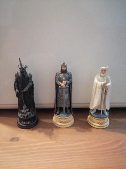 Ich habe drei Figuren aus der Herr der Ringe abzugeben. Gandalf der Weiße, der Hexenkönig von Angmar und Aragorn als König.