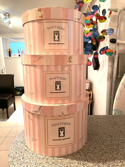 3 nostalgische, sehr gepflegte, elegante Hutboxen / Hutschachteln / Aufbewahrungsboxen