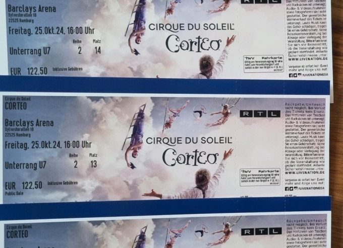 3 Karten Cirque Du Soleil Corteo, Hamburg, 25.10.2024