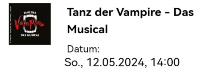3 Karten: Tanz der Vampire Hamburg, Muttertag: 12.5.24 14Uhr