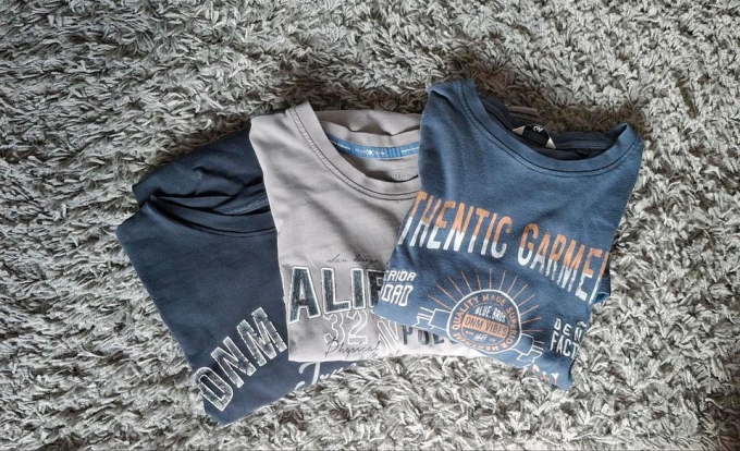 Aufdrucke sind kriselig geworden. Siehe bitte Fotos. Sonst sind die Shirts soweit in Ordnung.