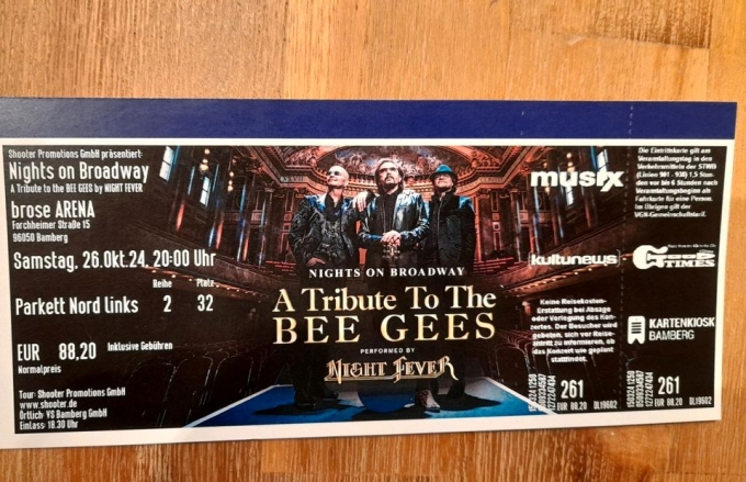 Biete 3 Karten für A Tribute To The Bee Gees im Bamberg an.