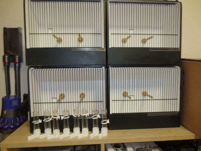 4 Ausstellungskäfige für Exoten, guter Zustand. Mit 8 neuen Tränken.