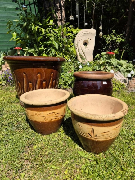 4 braune Keramik Übertöpfe Pflanzkübel Pflanztöpfe Blumentöpfe
