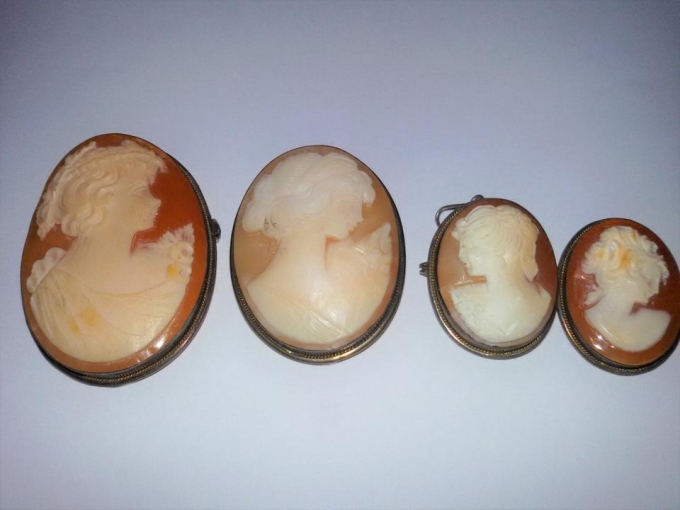 4 Broschen/Kettenanhänger aus Silber mit einer Gemme, AB 25€