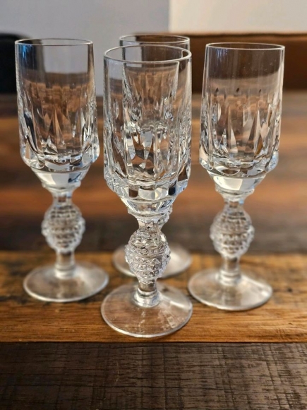 Sehr gut verarbeitete Kristallgläser. Höhe ca. 14 cm. Schön in der Hand zu halten mit einem guten Gewicht.