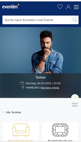 Verkaufe 4 Tickets für das Tarkan Konzert am 04.05.25 in Hamburg