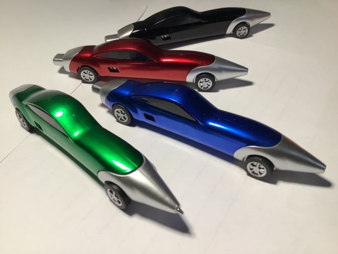 4 kreative Kulis in Autoform. Neu und unbenutzt.