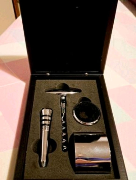 Ich biete 5 Set mit Weinzubehör Edelstahl in Geschenkbox an.