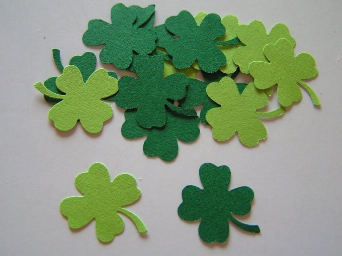 Diese kleinen Kleeblätter eignen sich hervorragend als Tischdekoration für den Geburtstag, zum Kartenbasteln usw.