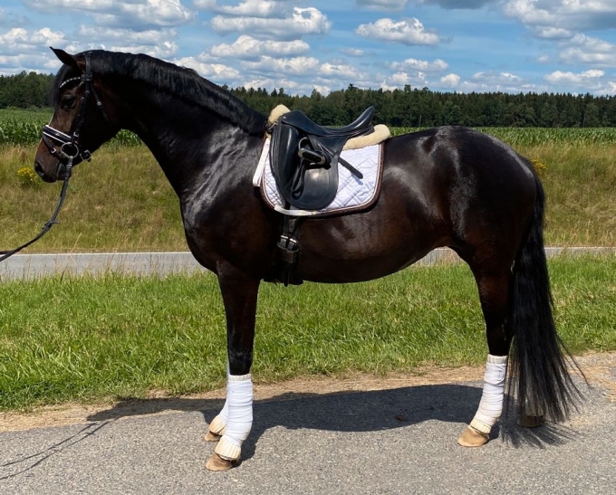 **Gelegenheit** Verkaufe wunderschöne, bewegungsstarke 6-jährige Staatsprämienstute von Christ aus einer Elitestute von Show Star. Die Stute hat sehr gute GGA und einen überragenden Schritt. „Sweet like Chocolate H“ ist die Schwester von Doppeleuropameisterin „Soleil de la coeur H“. Dressurpferde A vorne platziert, hatte bereits vierjährig ein sehr gutes Fohlen. Nach einer ausgeheilten Verletzung ist sie nicht mehr sporttauglich und wird jetzt als Zuchtstute in sehr gute Hände abgegeben. Tragend für 2024 von Morricone. Größe 1,64m, Standort 93488 Schönthal