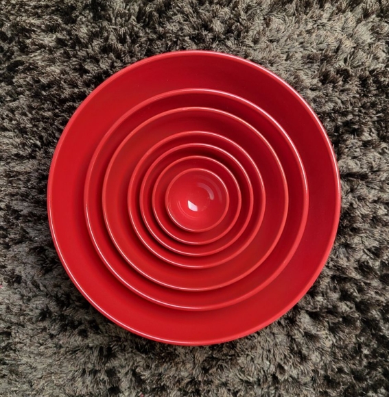 Ich biete dieses 7-teilige Set Keramikschüssel, in einem kräftigen Rotfarbton. Minimaler Abplatzer an einer Schüssel, siehe drittes Foto.