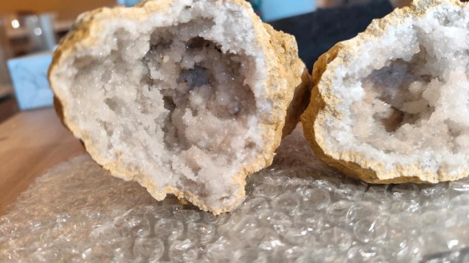 751g, Komplette Druse, zweiteilig, Geode, Edelstein, Unikat