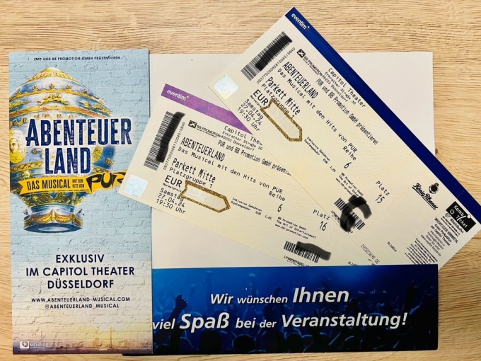 Ich biete hier 2 Tickets für den 27. April 2024 um 19.30 Uhr , für das schöne Musical Abenteuerland von PUR.