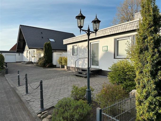 Das Wohnhaus mit Satteldach und der direkt angrenzende Flachdach-Bungalow bietet Ihnen flexible Nutzungsmöglichkeiten. Bisher wurde der Bungalow für berufliche Zwecke im medizinischen Bereich genutzt.