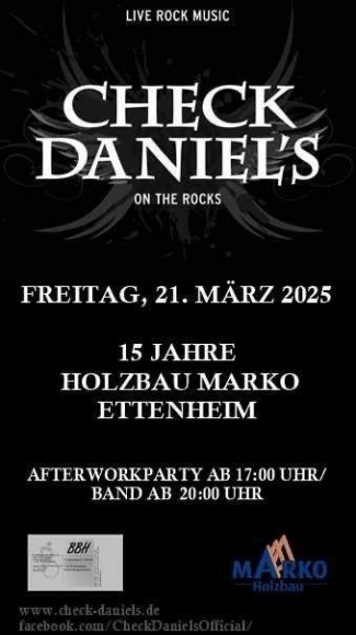 15 Jahre Holzbau Marko Afterworkparty 21.3. mit Liveband Check Daniels Eintritt frei