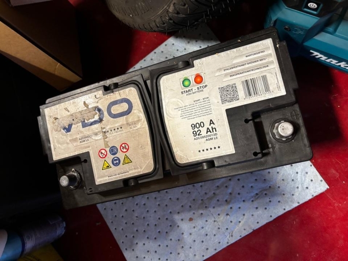 Die Batterie zeigt normale Gebrauchsspuren am Gehäuse, die Anschlüsse sind in gutem Zustand. Sie wurde ordnungsgemäß gelagert und ist einsatzbereit.