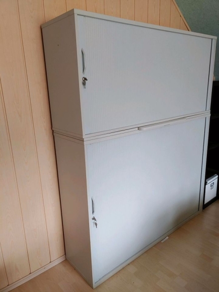 Zweiteiliger Aktenschrank mit Schiebtür und Ablagebrett
