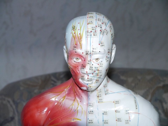 männliche Akupunktur-Übungspuppe 82 cm.Mit angezeichneten Druckpunkten und Meridiane.