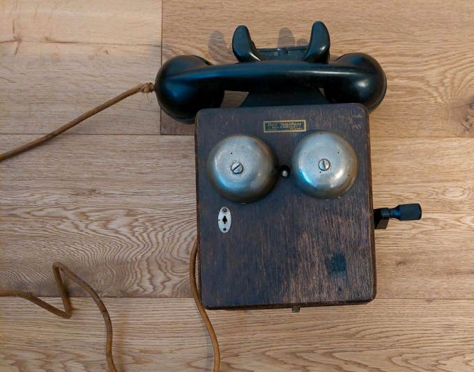 Alexander Graham Bell, antikes Holztelefon, 1930er/40er Jahre,rar, sehr schöner Zustand. War bis vor kurzem als analoges Haustelefon bei einem älteren Ehepaar angeschlossen.