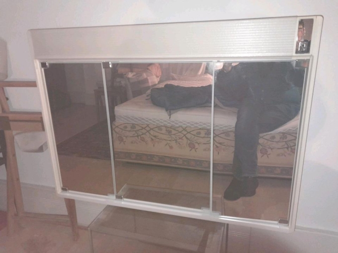 Badschrank aus den 70ern. Guter Zustand. Lichtleiste und Steckdose innen.