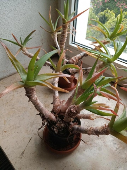 Wir sind etwa 25 cm groß. Der Topf hat einen Durchmesser von 8,5 cm. Wir brauchen etwas neue Erde in einem größeren Topf und viel liebevolle Zuwendung. Darauf freuen wir uns.
